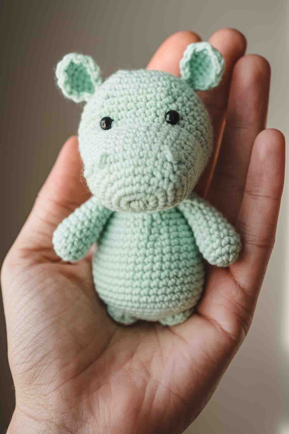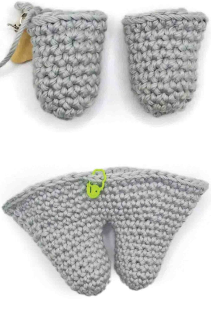 Fasten off, leaving a long tail for sewing. Fold the ear at the center and sew one end together to “pinch” the end together.